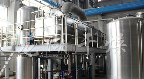 單效或多效降膜蒸發(fā)器,適用于牛奶、葡萄糖、淀粉、木糖、制藥、化工、生物工程、環(huán)保工程、廢液回收等行業(yè)進行低溫連續(xù)式蒸發(fā)濃縮,具有傳熱效率高,物料受熱時間短等主要特點,所以特別適用于熱敏性、粘滯性、發(fā)泡性等物料。